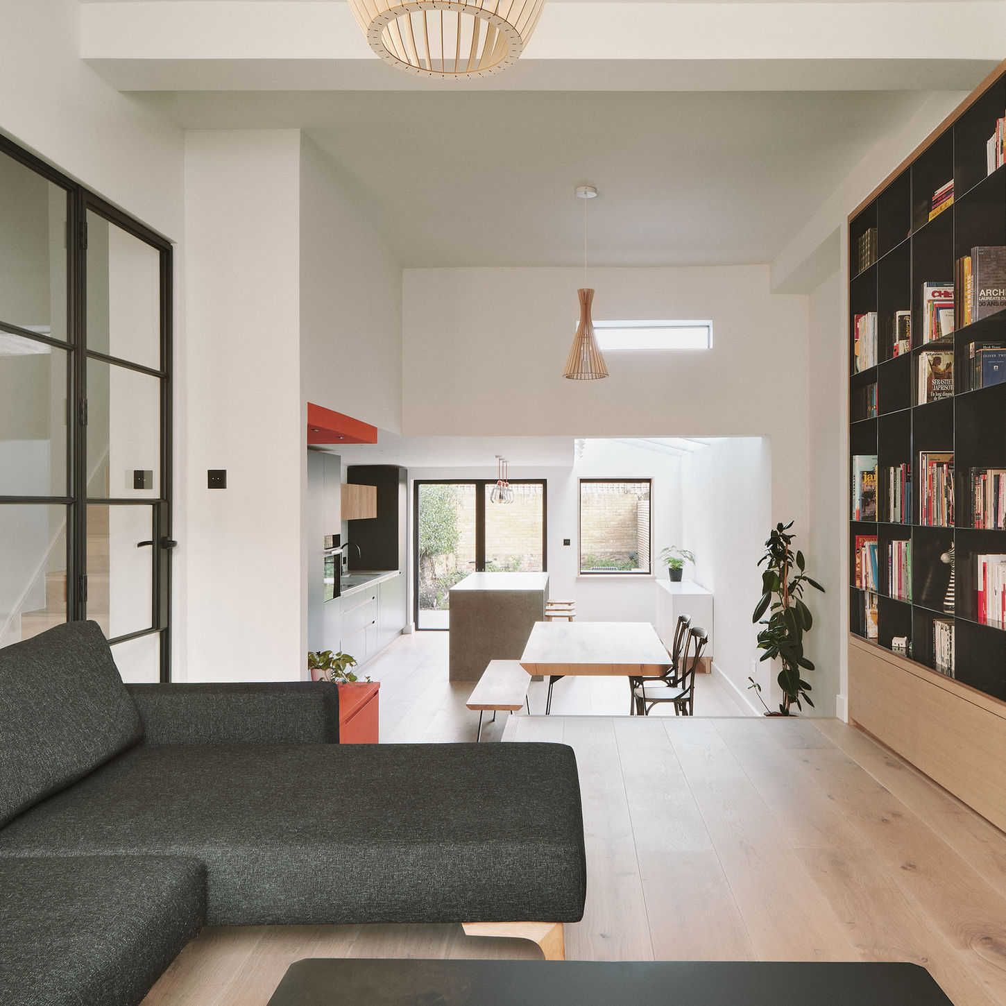 Their previous place was an industrial-type warehouse conversion, and they loved their time there. When thinking about redesigning the house, we wanted to bring some of the ideas of the old house with us, but adapt them to their new home. We kept most of their furniture and wanted to somehow make the space work for it. They also had some metal bookshelves in the flat that they loved. so we designed a new one to bring that spirit into the house but adapt it to the new Victorian surroundings.